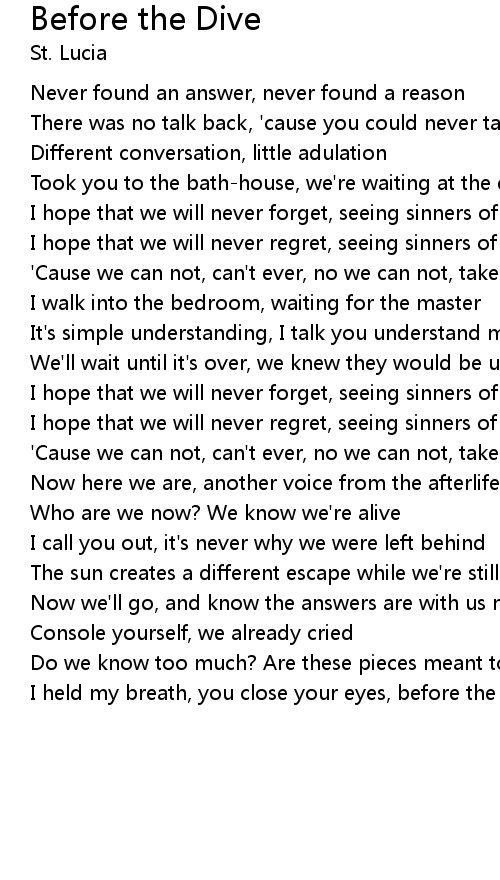 I held my breath, you close your eyes, before the dive |