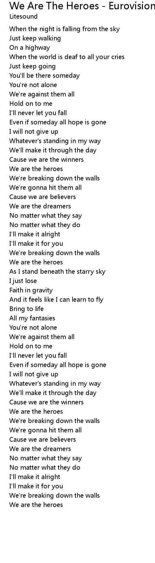 We Are The Heroes - Eurovision 2012 - Belarus Lyrics