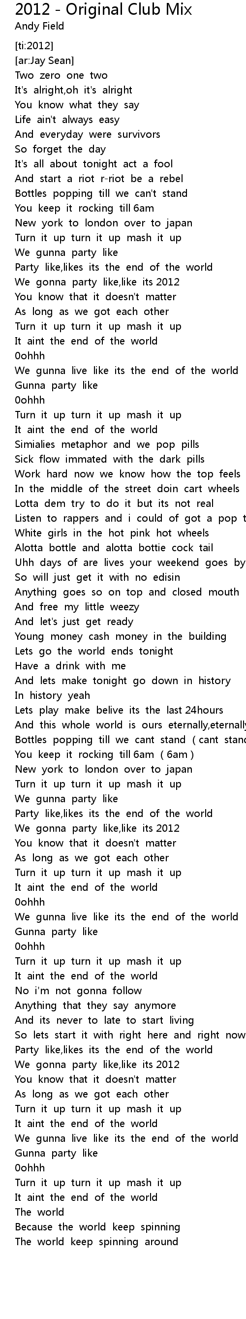 | [01:31.213] | Alotta bottle and alotta bottie cock tail |