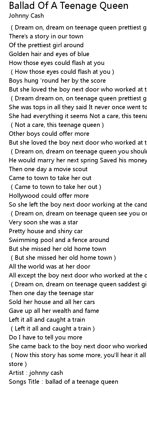 | [02:07.87] | Songs Title: ballad of a teenage queen |