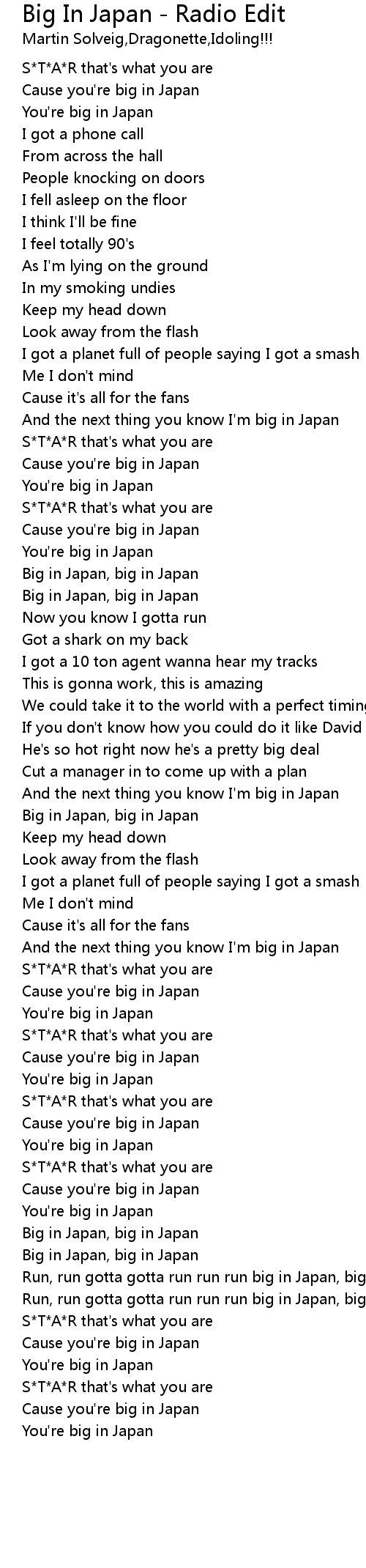 Run, run gotta gotta run run run big in Japan, big in Japan |