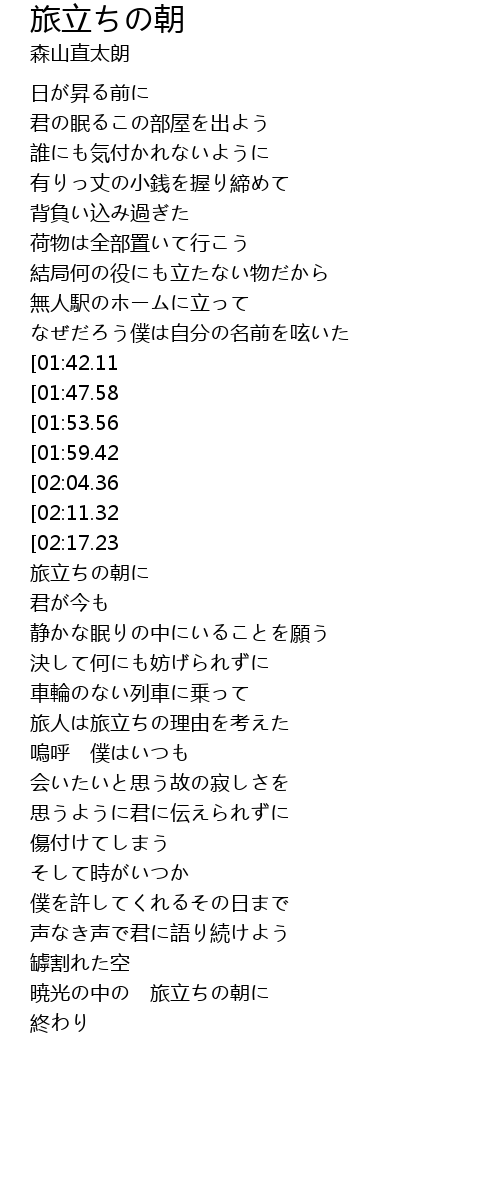 | [04:32.69][01:42.11] | 嗚呼 時はいつも |