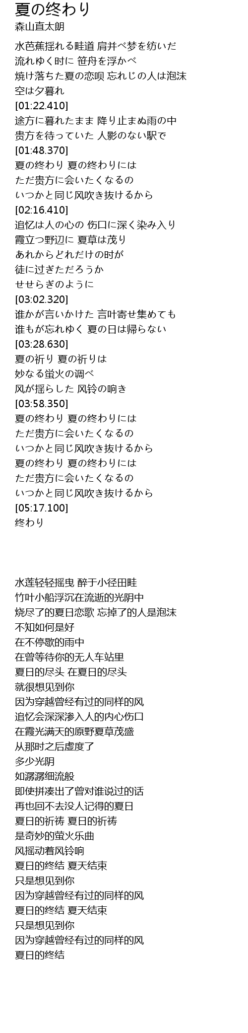 | [04:18.960] | 夏の终わり 夏の终わりには |