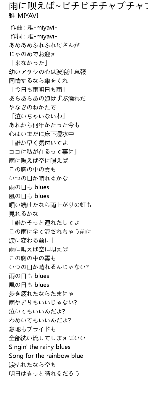 | [00:01.00] | 作词 : 雅-miyavi- |