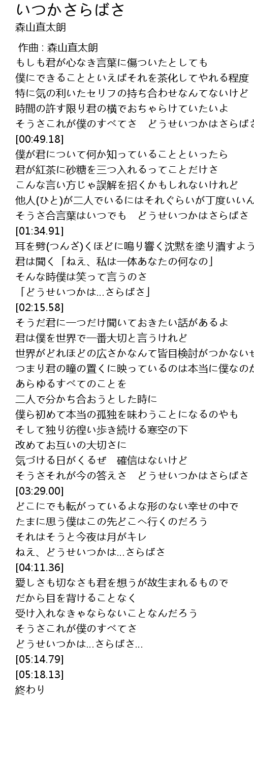 | [03:50.83] | ねえ、どうせいつかは…さらばさ |