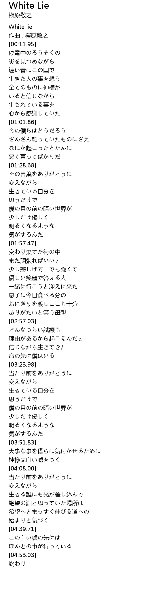 | [04:17.57] | 生きる誰にも光が差し込んで |