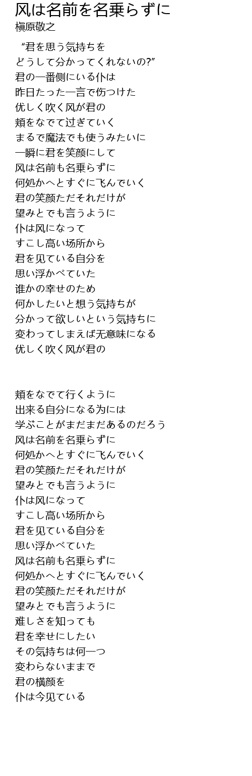 | Song | 风は名前を名乗らずに |