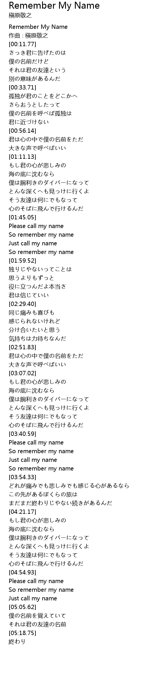 | [00:58.79] | 君は心の中で僕の名前をただ |
