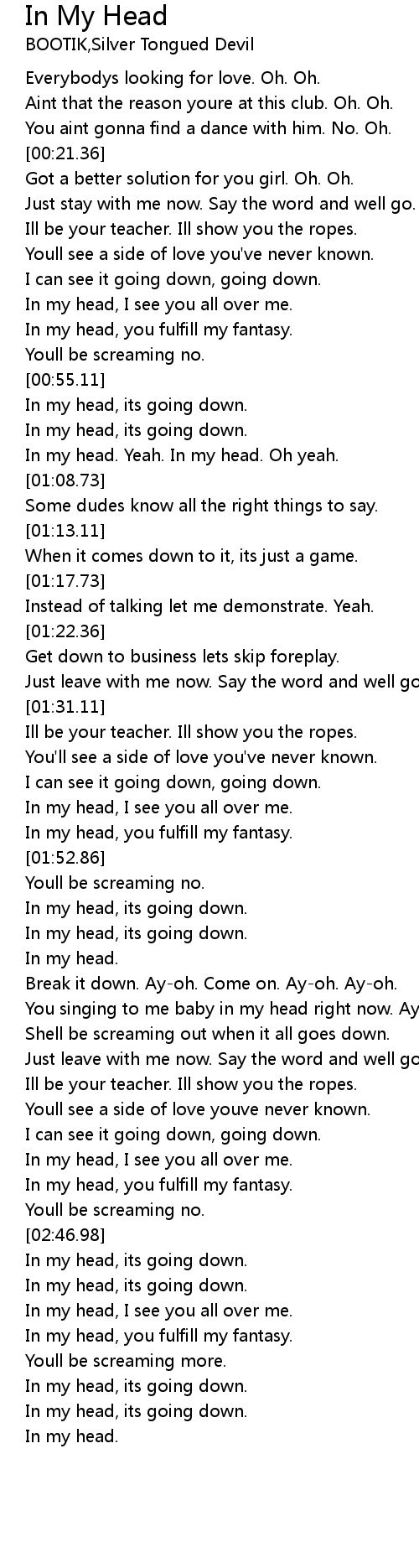 You singing to me baby in my head right now. Ay-oh. Ay-oh. Come on. |