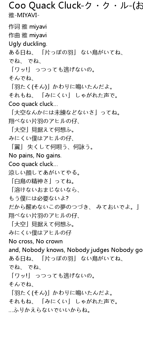 | [01:18.71] | みにくい僕はアヒルの仔、 |