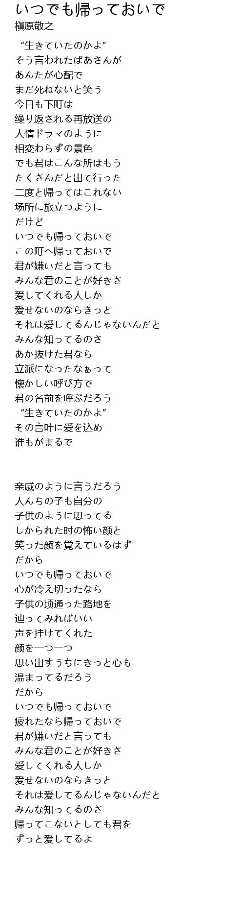 いつでも帰っておいで |