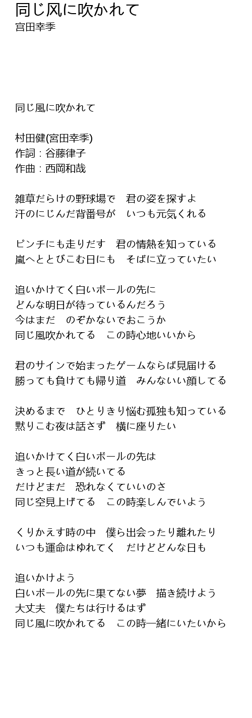 | Song | 同じ风に吹かれて |