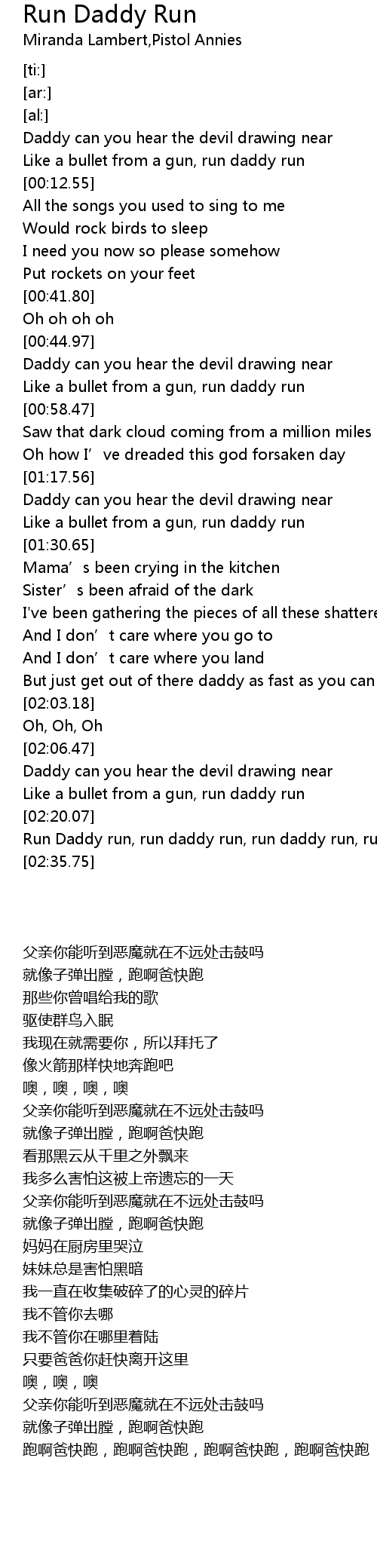 | [02:20.39] | Run Daddy run, run daddy run, run daddy run, run daddy run |