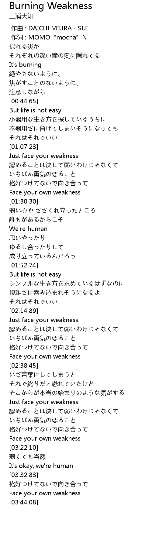 | [00:00.00] | 作曲 : DAICHI MIURA・SUI |