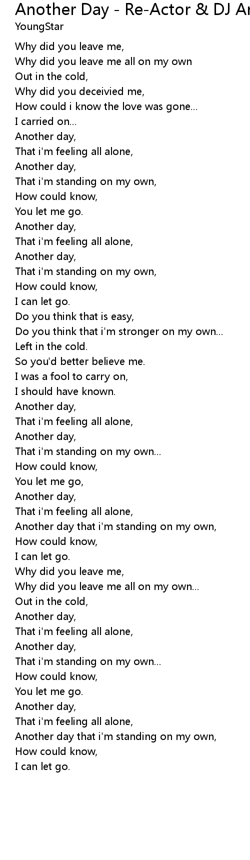 Another Day - Re-Actor & DJ Arne L Ii's Dub Mix Lyrics