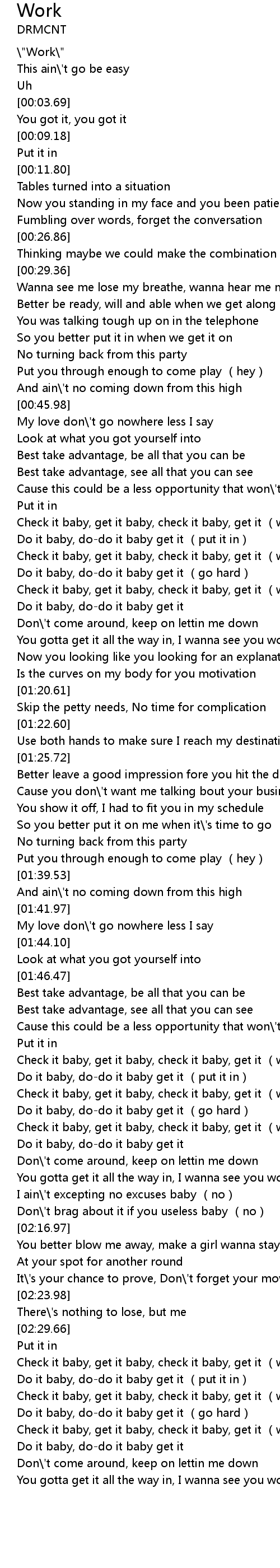 | [00:00.44] | \"Work\" |