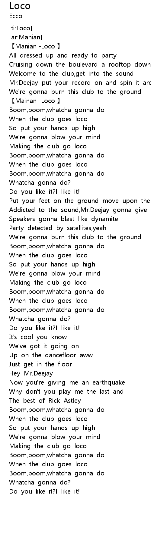 | [00:38.390] | Boom, boom, whatcha gonna do |