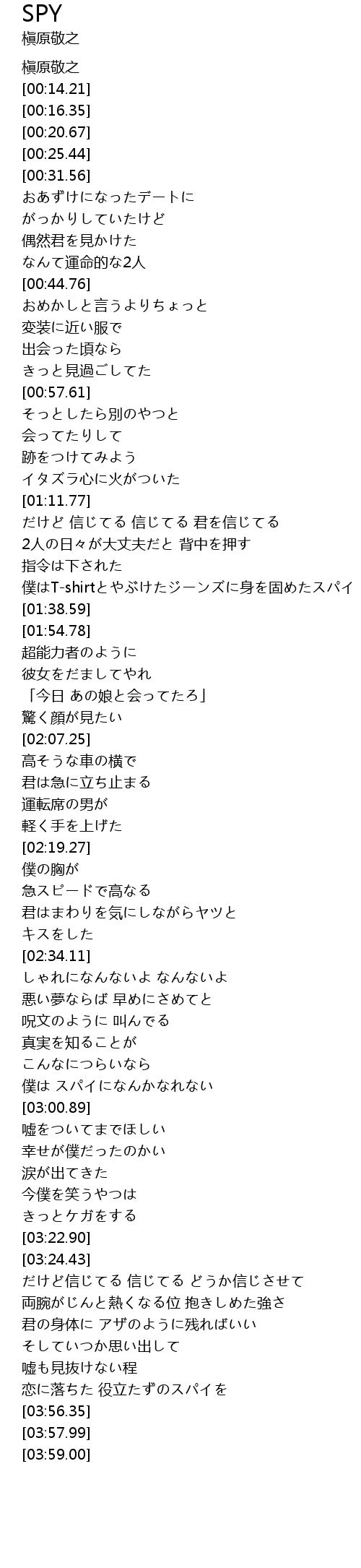 | [02:56.73] | 僕は スパイになんかなれない |