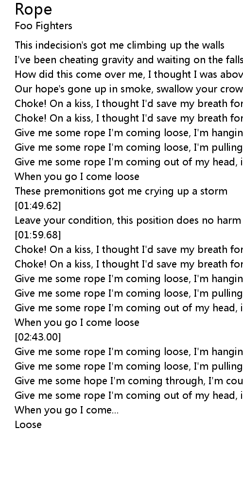 Give me some rope I'm coming loose, I'm hanging on you |