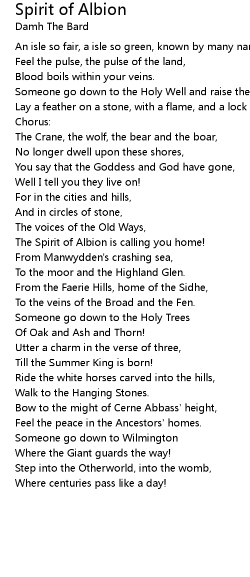 The Spirit of Albion is calling you home! |