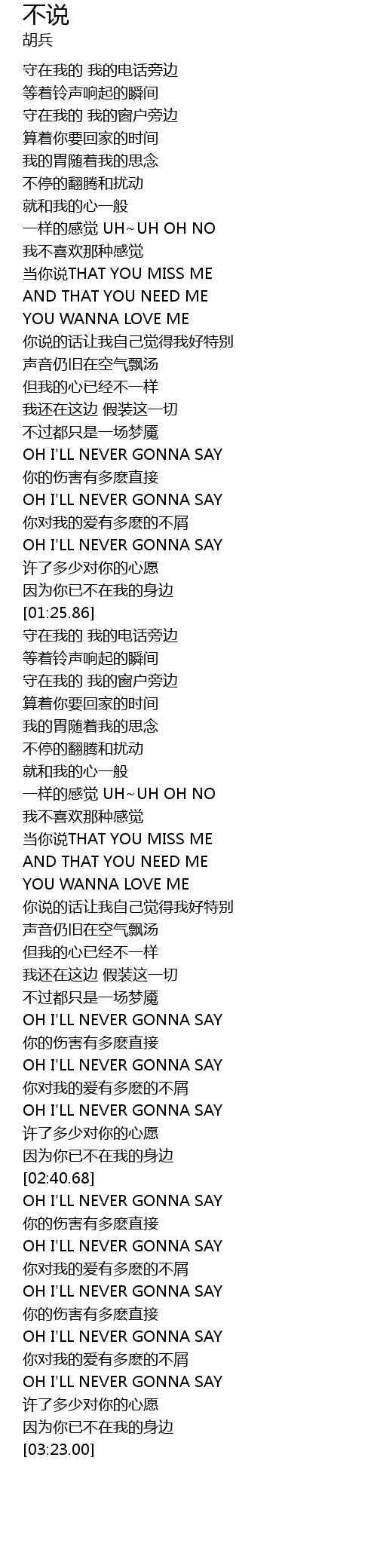 | [02:50.91] | OH I'LL NEVER GONNA SAY |