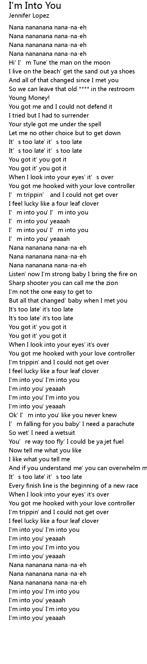 | [01:59.61] | I' m into you' yeaaah |