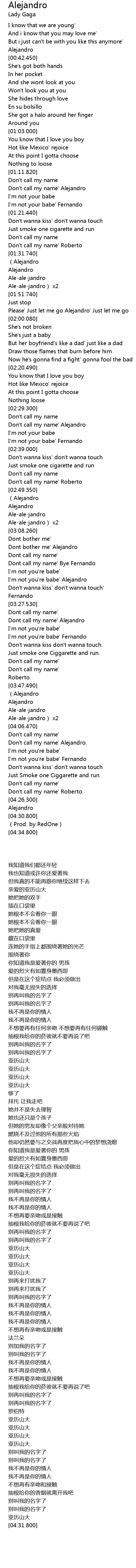 | [01:38.700] | Ale-ale-jandro) x2 |