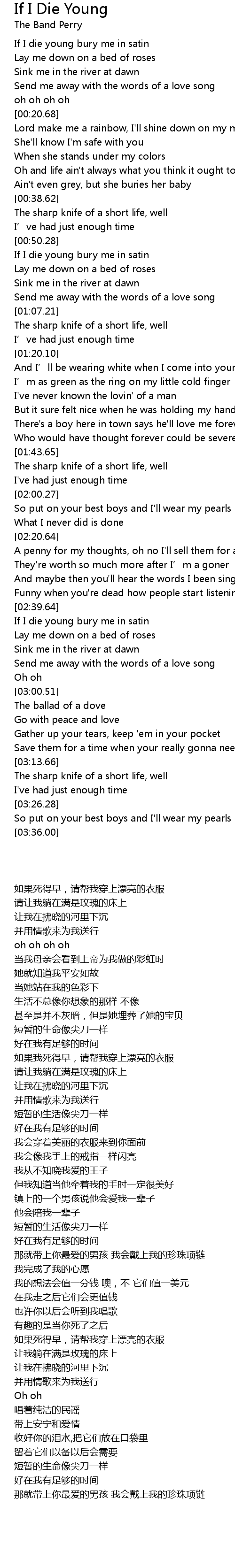 | [00:52.02] | If I die young bury me in satin |