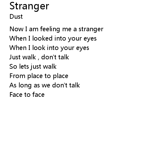 | Now I am feeling me a stranger | |