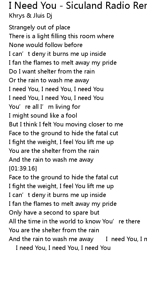 | [02:45.05] | And the rain to wash me away I need You, I need You, I need You I need You, I need You, I need You |
