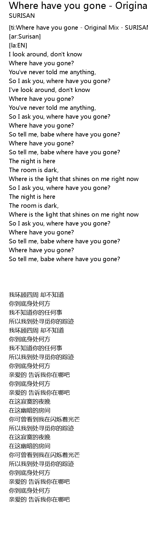 [ti:Where have you gone - Original Mix - SURISAN] |