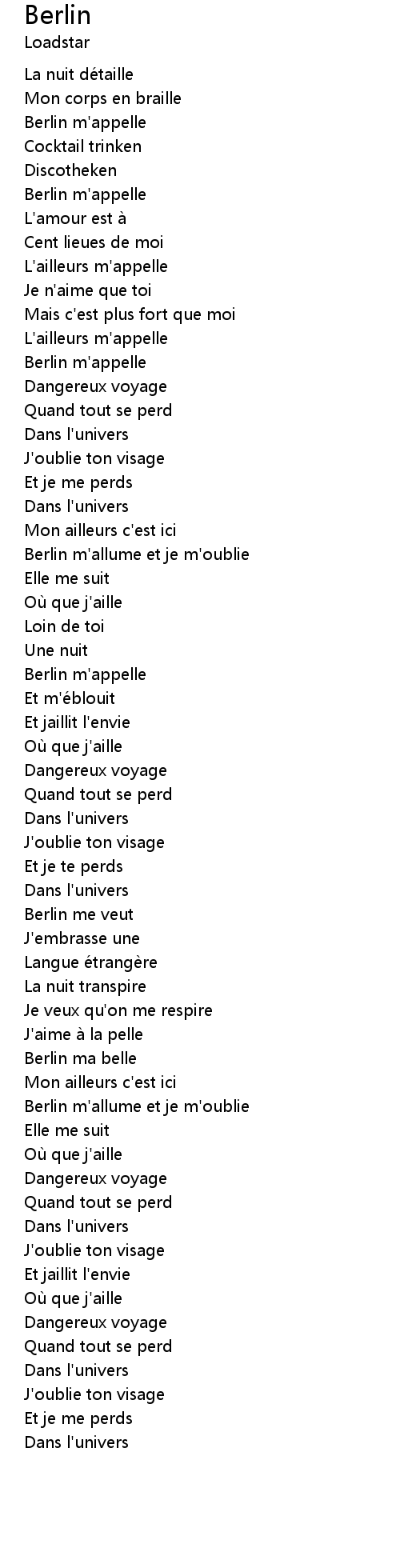 | Berlin m' allume et je m' oublie | |