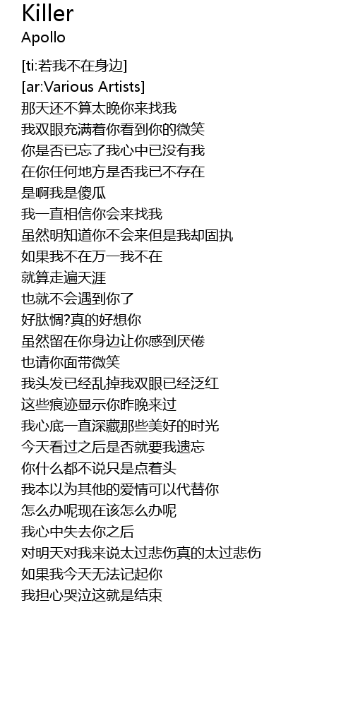 | [00:39.99] | 在你任何地方是否我已不存在 |