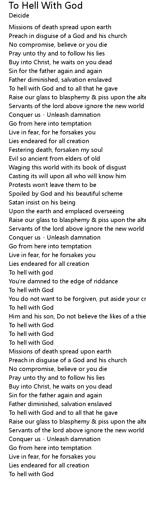 To hell with God and to all that he gave |