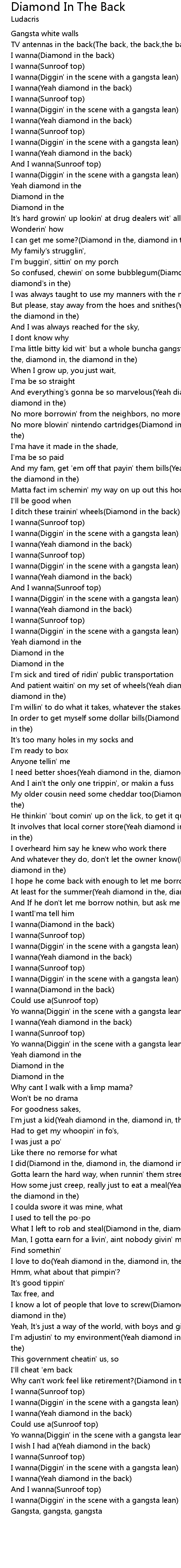Diamond In The Back Lyrics