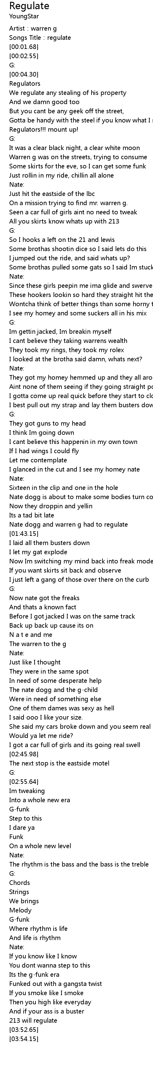 | [01:40.30] | Nate dogg and warren g had to regulate |