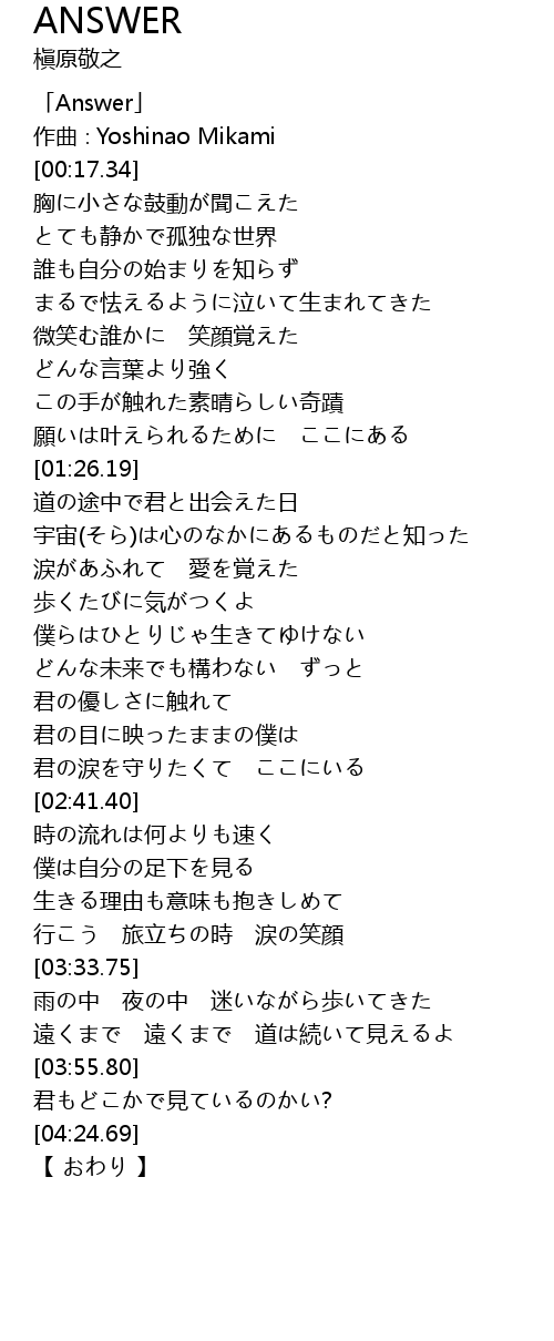 | [04:15.21] | 君もどこかで見ているのかい? |