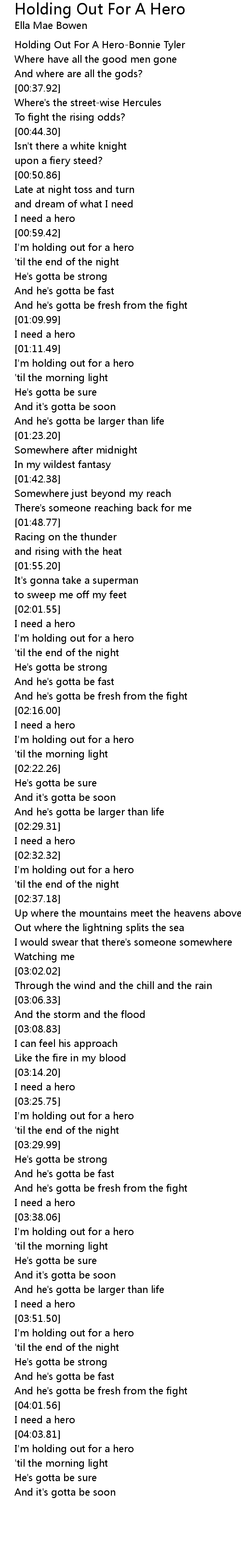 I'm holding out for a hero |
