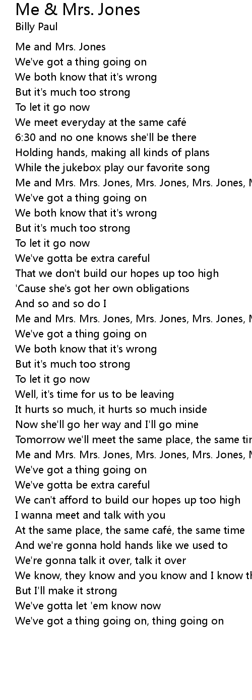 | Me and Mrs. Mrs. Jones, Mrs. Jones, Mrs. Jones, Mrs. Jones | |