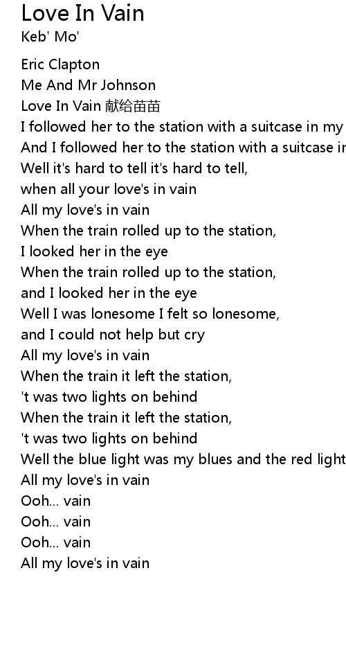 | [00:03.37] | Love In Vain 献给苗苗 |