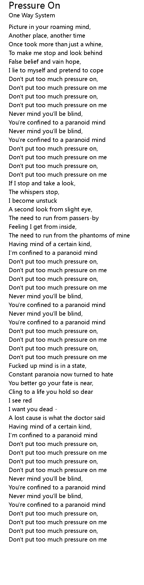 Don't put too much pressure on me |