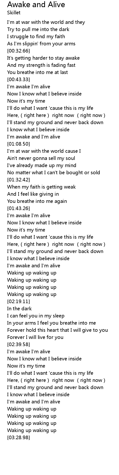 | [03:13.71] | I'm awake and I'm alive |