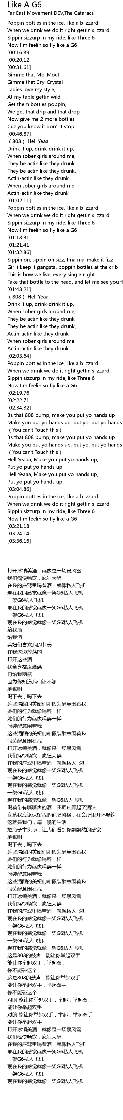 | [00:24.56][00:16.89] | Like a G6, Like a G6 |