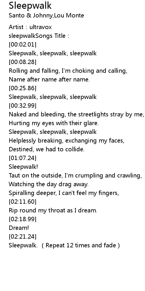| [02:37.30] | Sleepwalk. (Repeat 12 times and fade) |