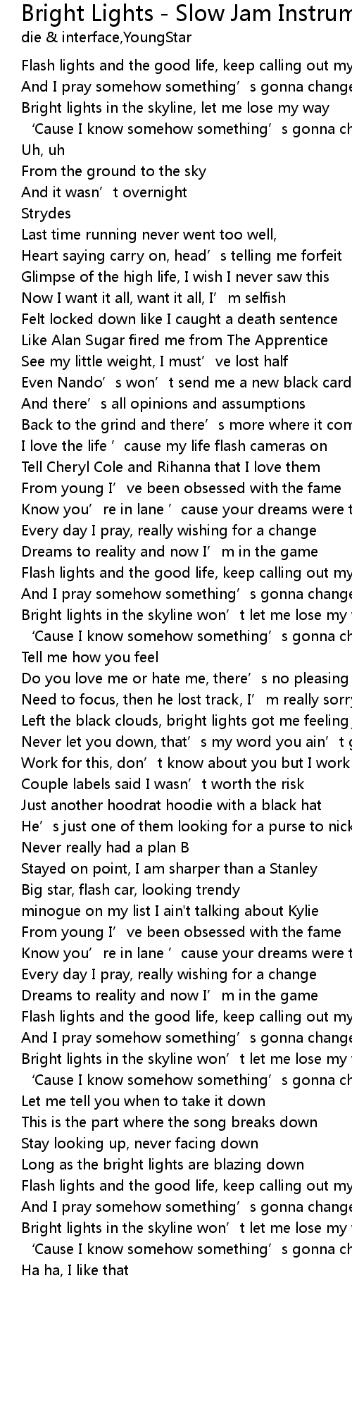 | Song | Bright Lights - Slow Jam Instrumental Mix |