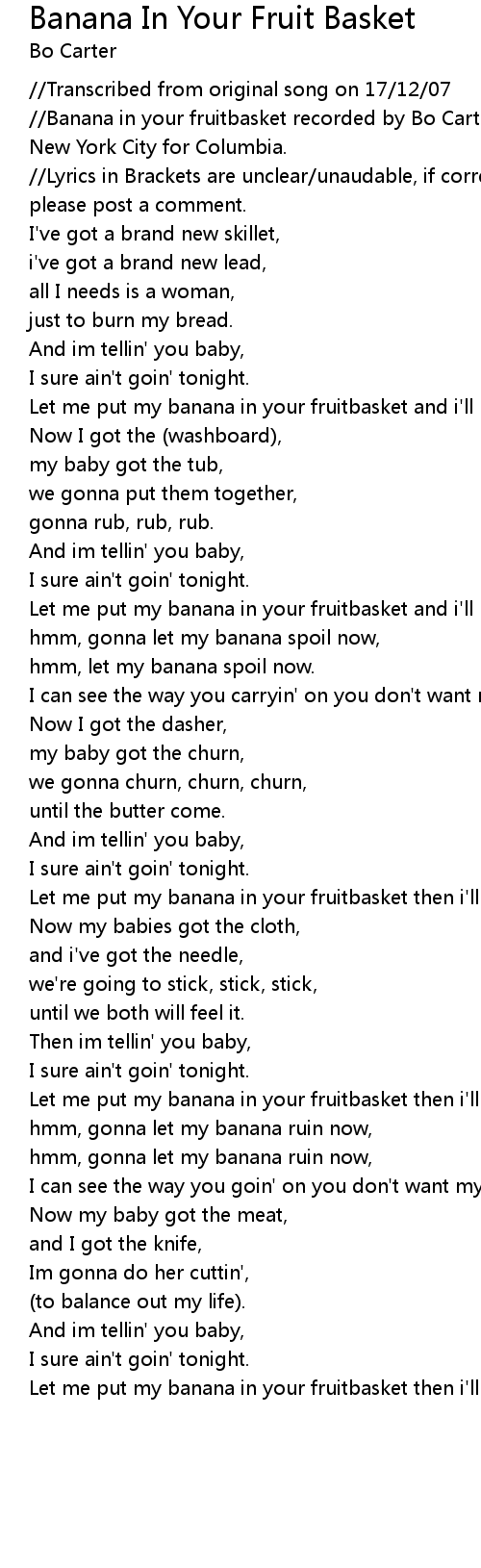 //Banana in your fruitbasket recorded by Bo Carter (Chatman) on 4th June 1931 in New York City for Columbia. |