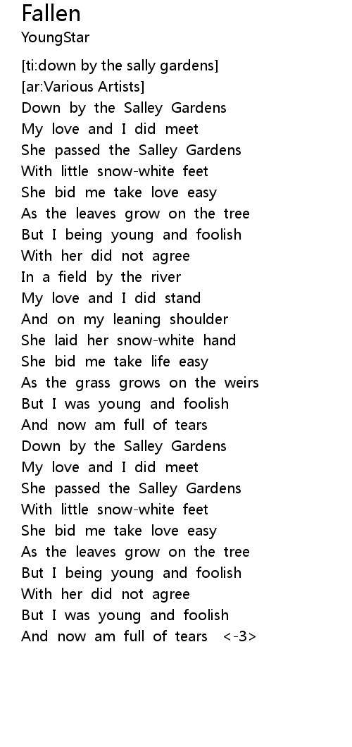 | [ti:down by the sally gardens] | |