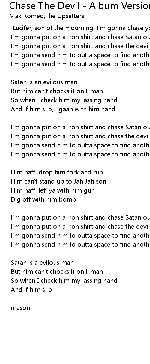 I'm gonna put on a iron shirt and chase the devil out of earth |