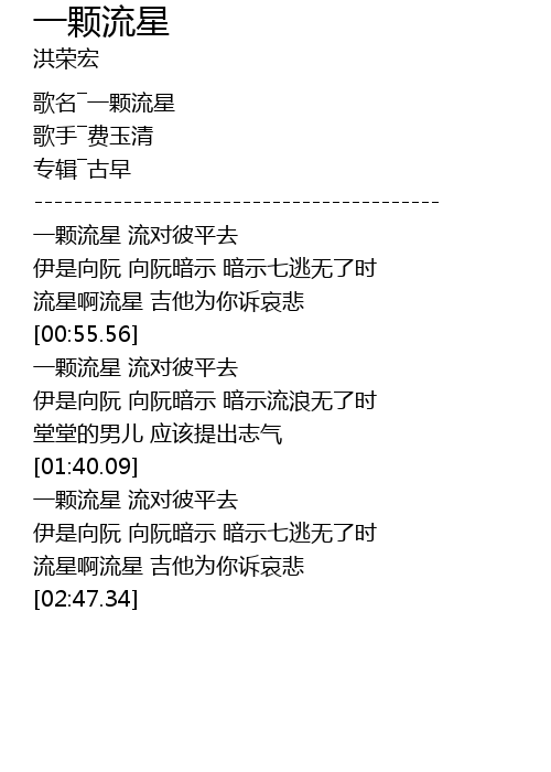 | [00:44.19] | 流星啊流星 吉他为你诉哀悲 |