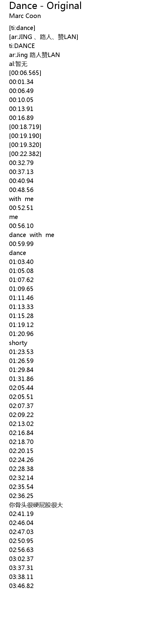 | [00:06.983]00:01.34] | gē míng: DANCE |